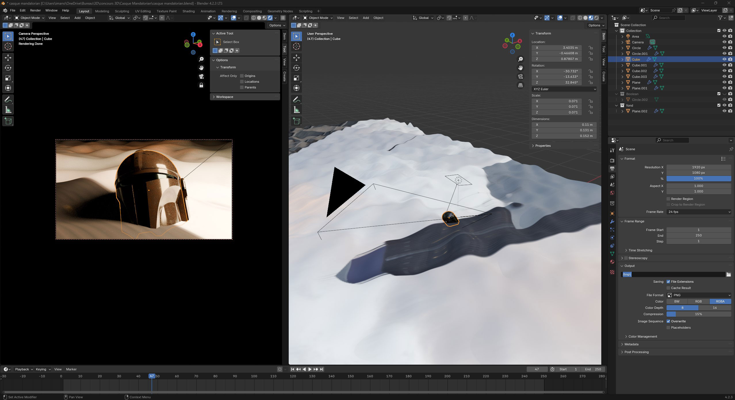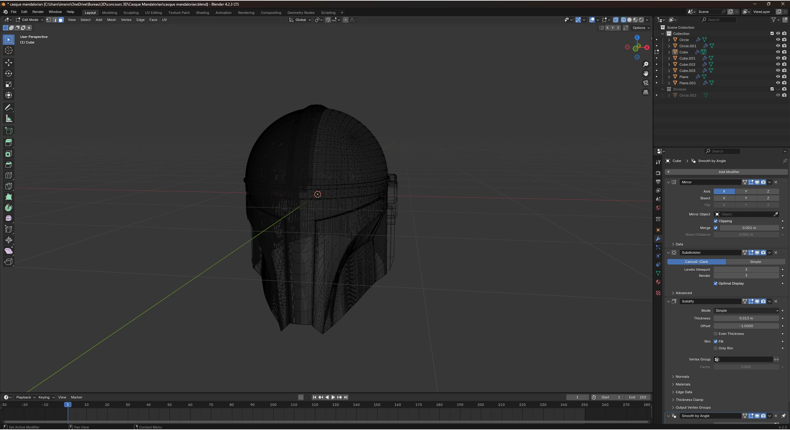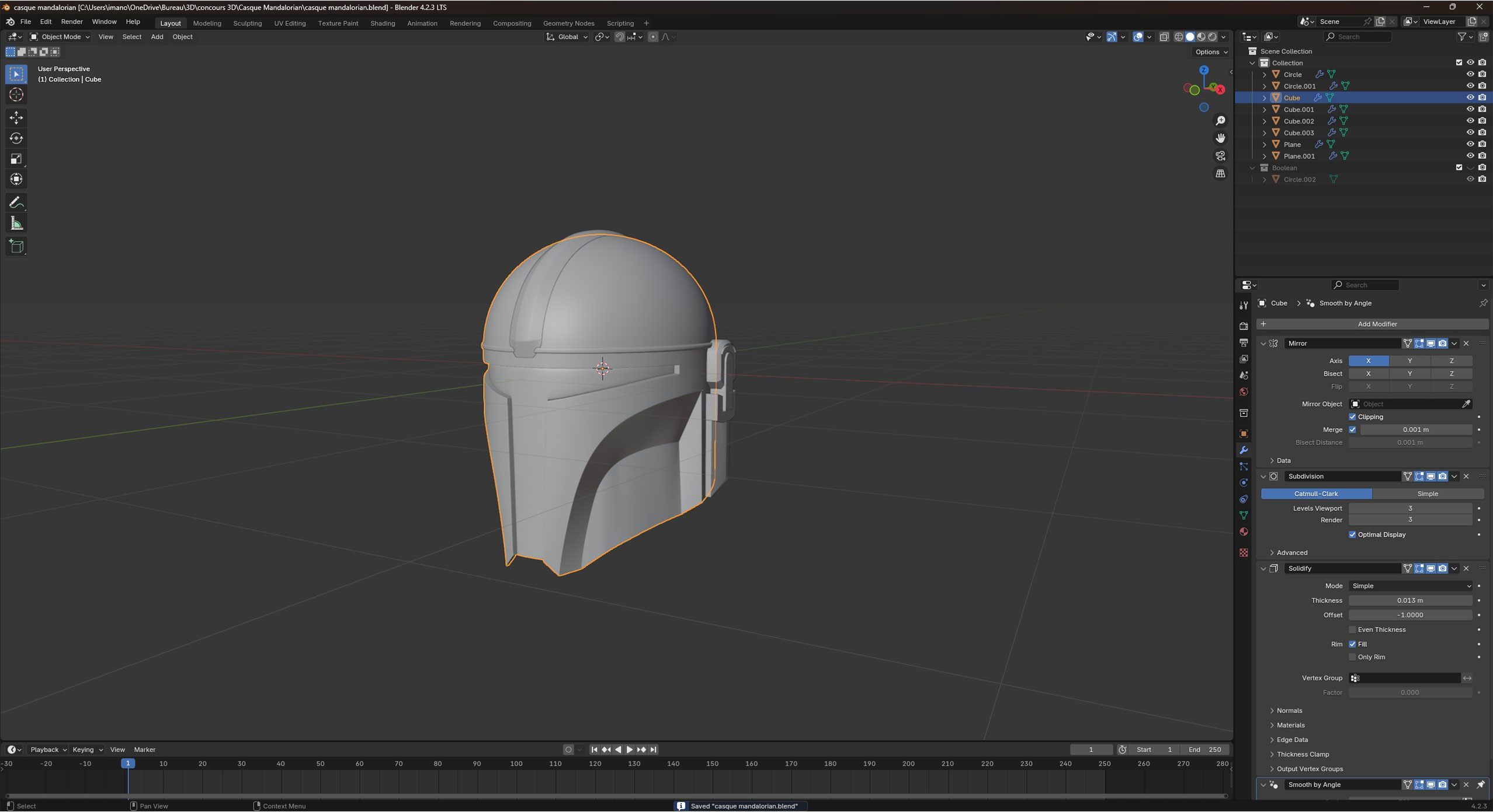 Alek6 est un créateur de contenu 3D et a proposé un concours de modélisation sur le thème (film et série). J'ai donc créé un casque mandalorian de la série du même nom (Star Wars) sur blender.